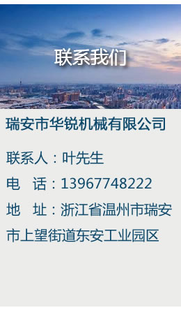 瑞安市華銳機(jī)械有限公司的誠(chéng)信、實(shí)力和產(chǎn)品質(zhì)量獲得業(yè)界的認(rèn)可。歡迎各界朋友蒞臨參觀、指導(dǎo)和業(yè)務(wù)洽談......【查看詳情】